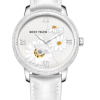 白色表盤配羅馬數(shù)字標(biāo)記。時(shí)、分、秒顯示。這款奢華腕表的表盤 12 點(diǎn)鐘位置印有品牌標(biāo)識(shí)。