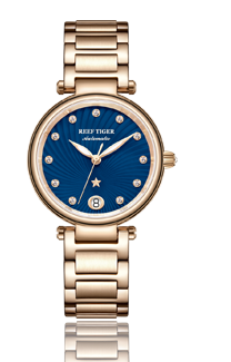 Reef Tiger Love Polaris 腕表。耐用的玫瑰金表圈,還配有玫瑰金表圈,打造專業(yè)的提案和演示。耐用的聚酯前后蓋,協(xié)調(diào)一致。