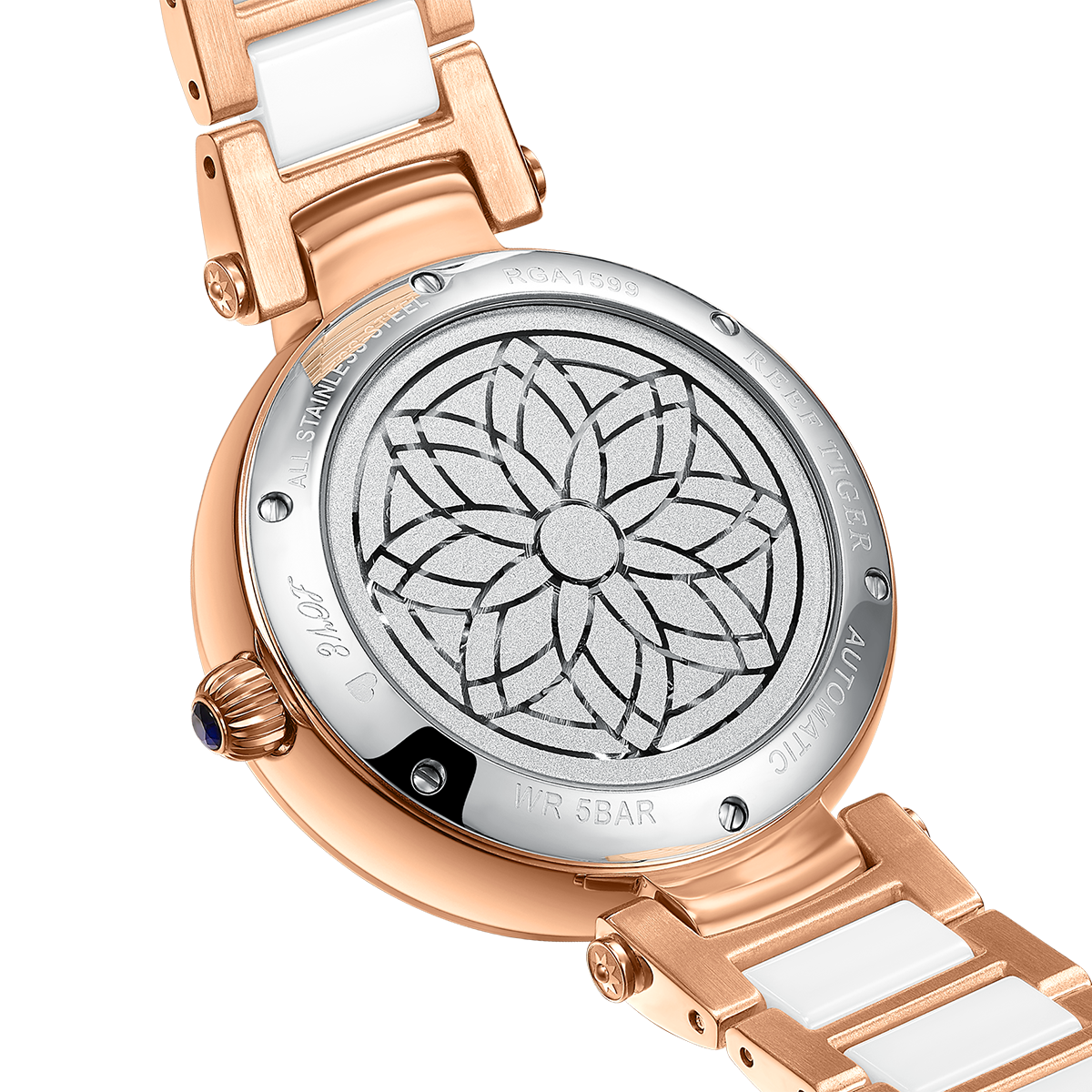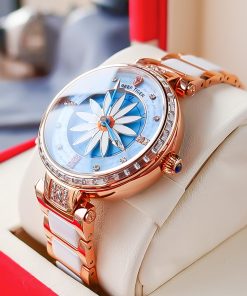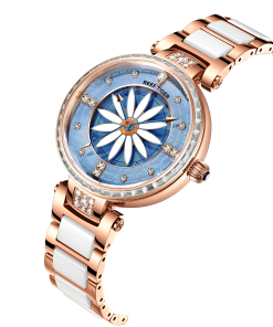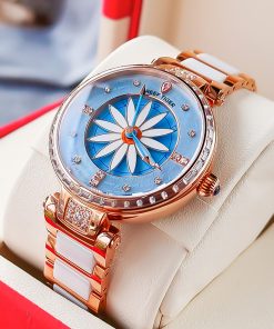 表盤(pán)配有鉆石標(biāo)記。顯示時(shí)、分、秒。手表表盤(pán)中央有一朵美麗的百合花。