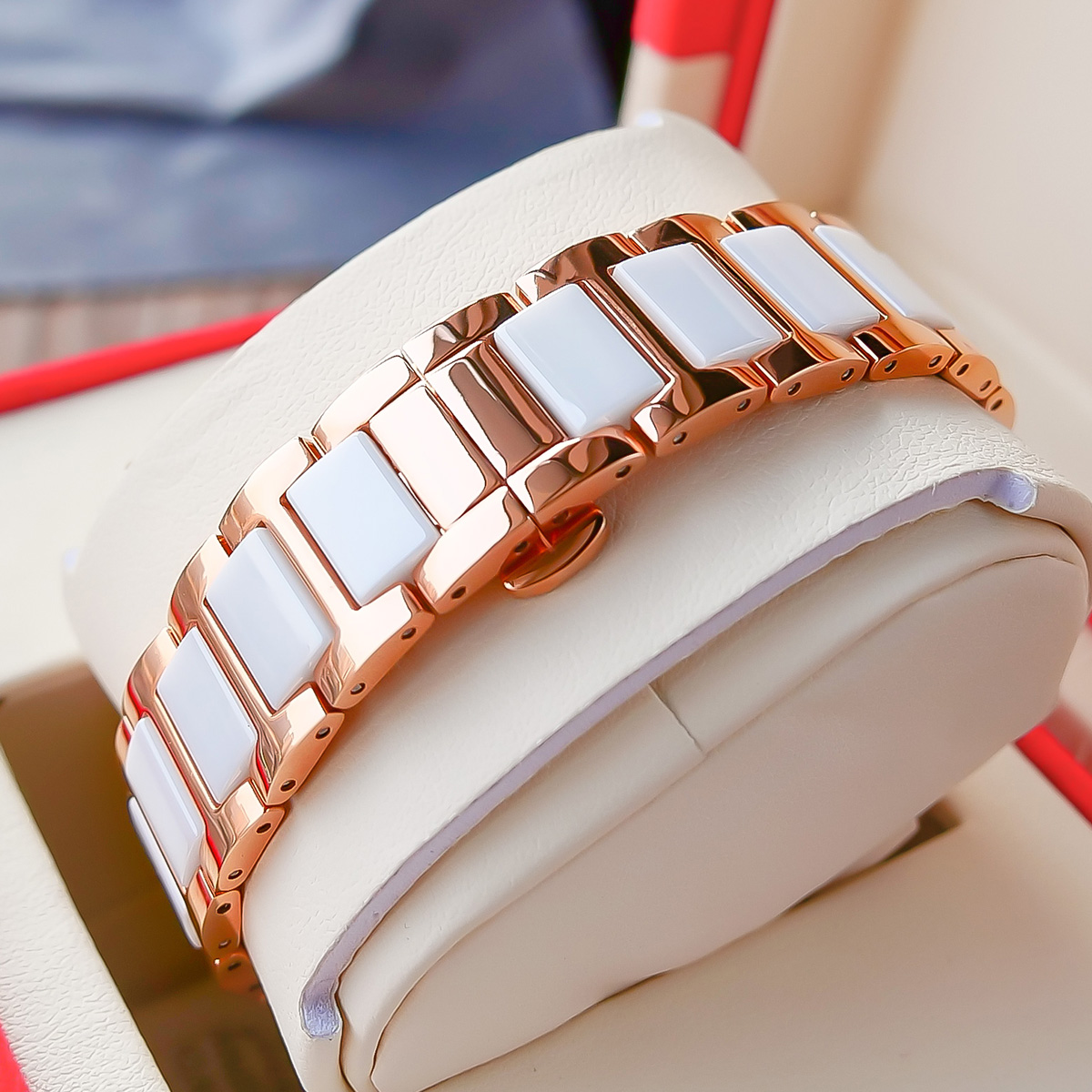 不銹鋼表鏈,帶雙按鈕折疊表扣。