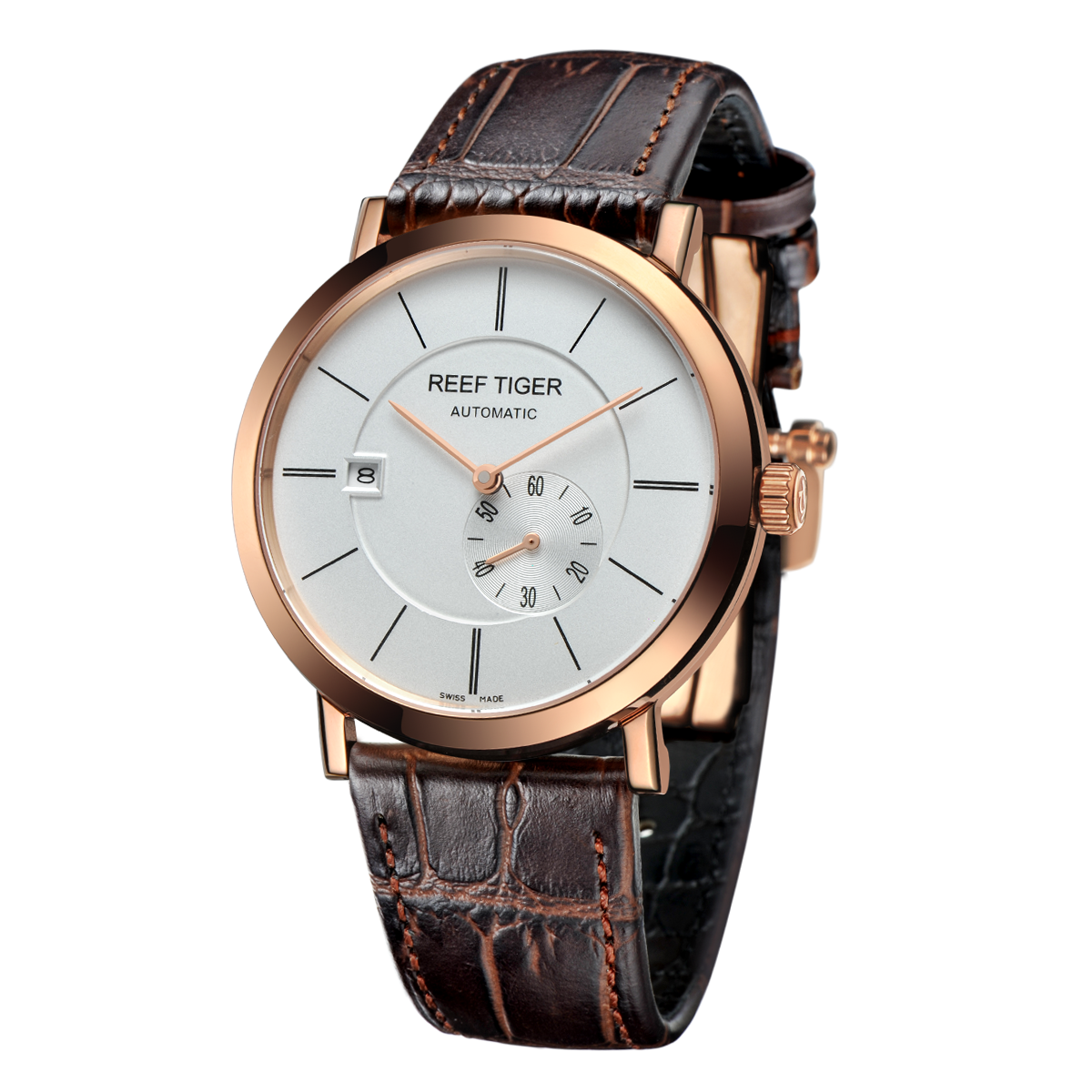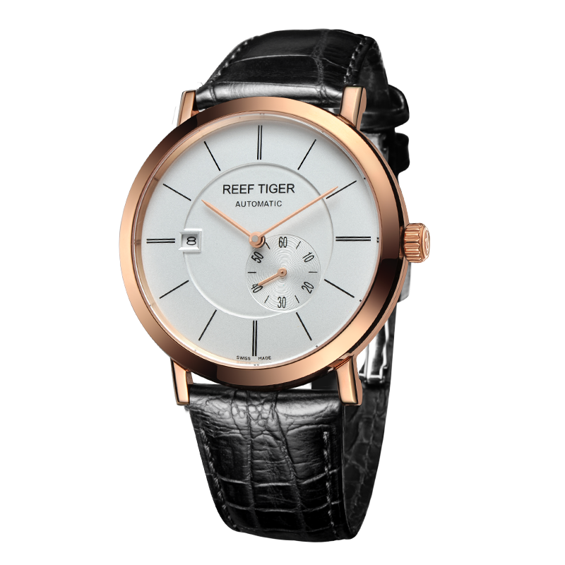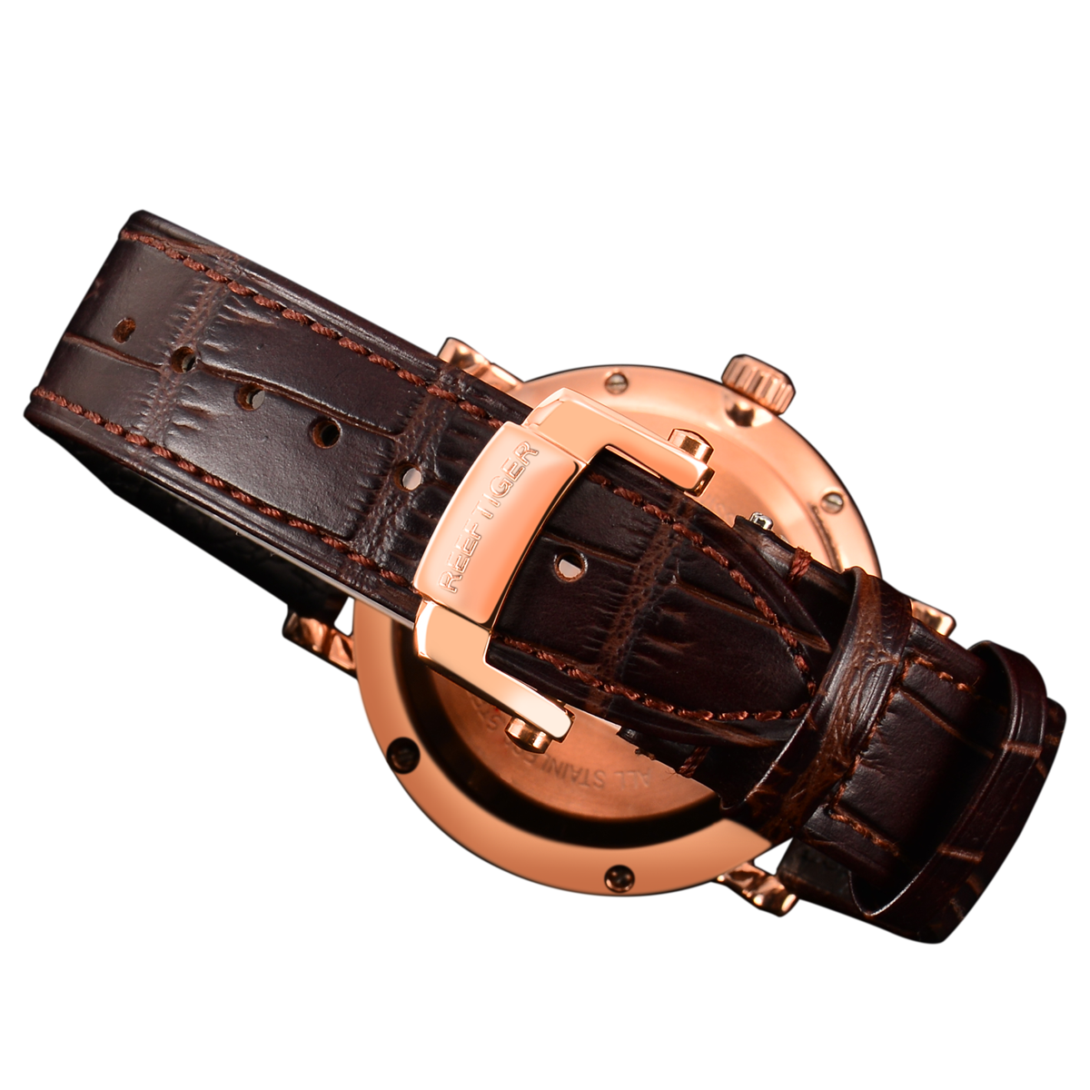 男士玫瑰金 Reef Tiger Seattle 簡約表帶手表。耐用的不銹鋼厚玫瑰金鍍層表身,還配有打造專業(yè)外觀的提案和演示。耐用的聚酯前后蓋,協(xié)調(diào)一致。