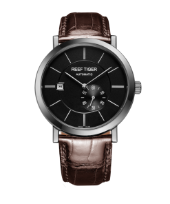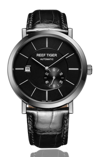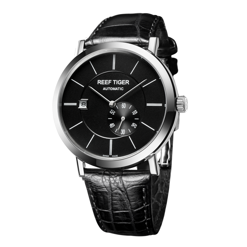 黑色表盤,現(xiàn)代簡約線條刻度,搭配小秒針和日期顯示,展現(xiàn)男士最迷人的大方與甜美。