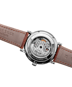 白色表盤帶棒狀標(biāo)記。小時、分鐘、陀飛輪顯示。這款豪華手表在表盤 12 點鐘位置有其標(biāo)志。