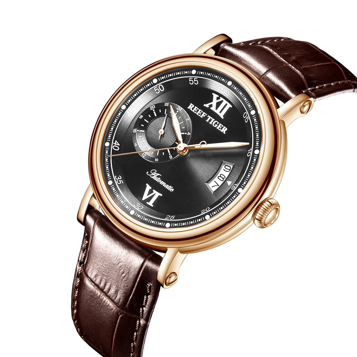 Reef Tiger Seattle Sander 手表。耐用的玫瑰金表圈,還配有玫瑰金表圈,打造專業(yè)的提案和演示。耐用的聚酯前后蓋,協(xié)調一致。