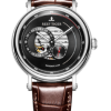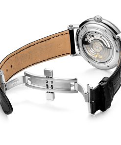黑色表盤,帶阿拉伯數(shù)字標記。顯示小時、分鐘和秒。這款奢華腕表的表盤 12 點鐘位置印有品牌標識。