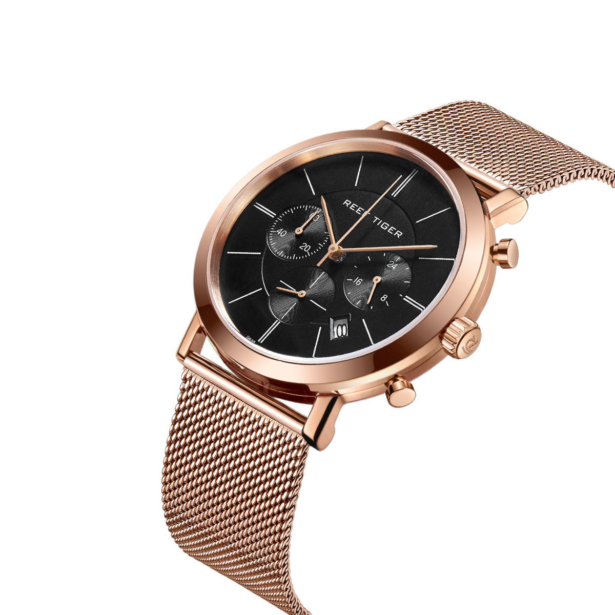 男士玫瑰金 Reef Tiger Seattle Mountain Rainier 手表。耐用的不銹鋼鍍玫瑰金,還配有打造專(zhuān)業(yè)外觀的提案和演示。耐用的聚酯前后蓋,協(xié)調(diào)一致。