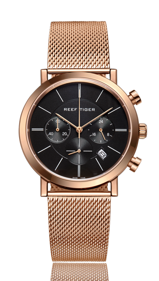 玫瑰金表帶,Reef Tiger 專(zhuān)有表帶系統(tǒng)。
