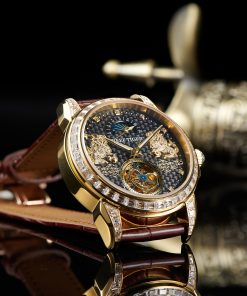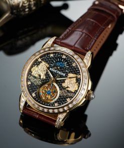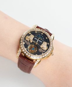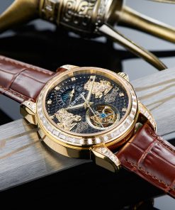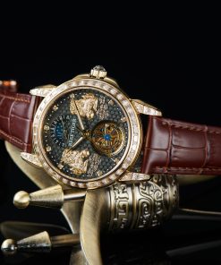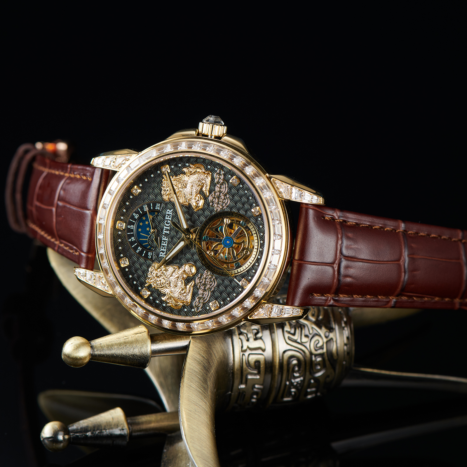 Reef Tiger 貔貅多功能男士鉆石皮革表帶自動手表 RGA1935-PBSD