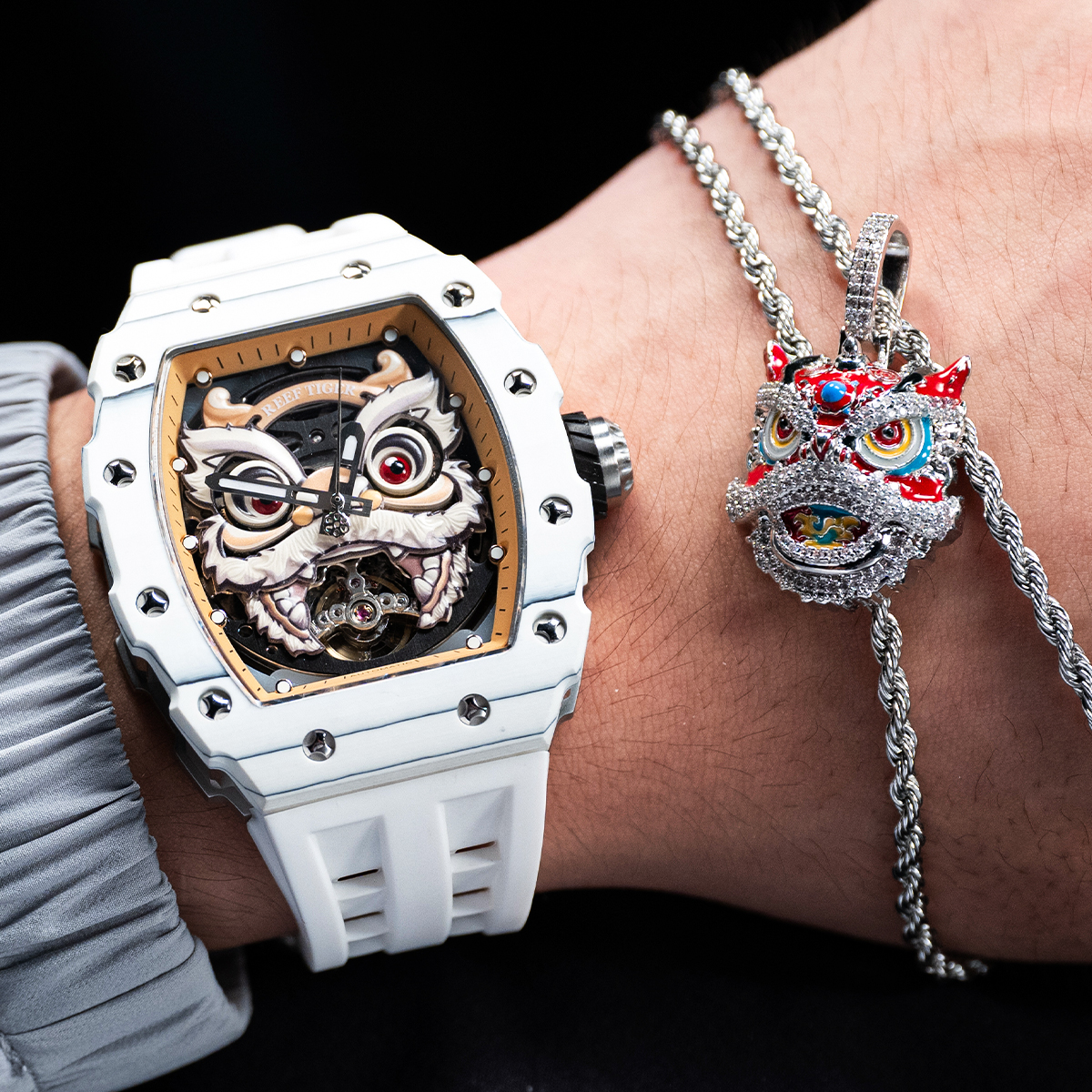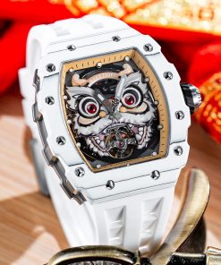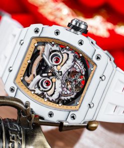 REEF TIGER 舞獅設計男士自動手表酒桶形超級夜光紅色橡膠表帶防水機械表 RGA3009-L-BBB