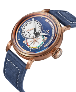 Aurora Pilot 腕表。耐用的不銹鋼表殼鍍有玫瑰金,還配有打造專(zhuān)業(yè)外觀的提案和演示。耐用的聚酯前后蓋與協(xié)調(diào)。