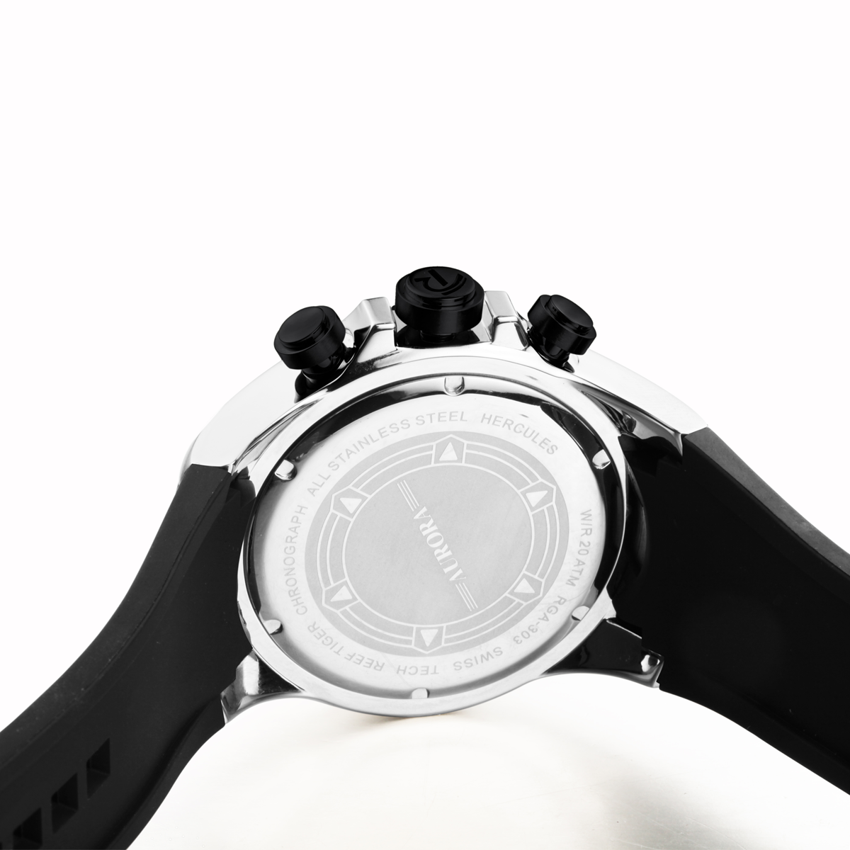 Aurora Hercules 計時腕表。耐用的不銹鋼 PVD 表圈也適合打造專業(yè)的提案和演示。耐用的聚酯前后蓋與協(xié)調(diào)一致。