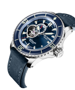 藍(lán)色表盤,帶棒狀標(biāo)記。小時(shí)、分鐘、秒。