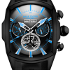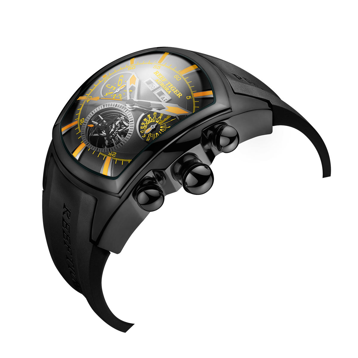 黑色表盤,帶夜光棒標記和大型超級夜光指針。陀飛輪、小時、分鐘、秒。這手表的表盤 12 點鐘位置有其標志。