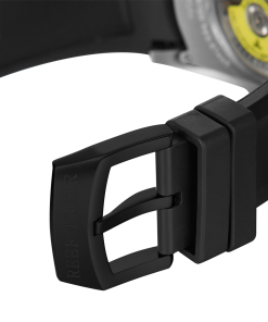 柔軟舒適的黑色橡膠表帶,配有表扣。