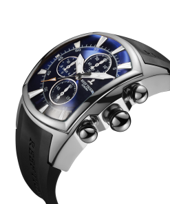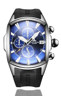藍(lán)色表盤,帶夜光棒標(biāo)記和大型超級夜光指針。日期、小時(shí)、分鐘、秒。這手表的表盤 3 點(diǎn)鐘位置有其標(biāo)志。