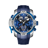 藍(lán)色表盤搭配黑色蜘蛛。 12:00 顯示年份和月份,9:00 顯示星期,3:00 顯示日期。