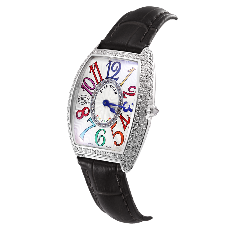 女士 Coco Rose 手表。酒桶形表殼,鑲嵌 2 排圓形華洛世奇鉆石,還配有打造專(zhuān)業(yè)外觀的提案和演示。耐用的聚酯前后蓋,搭配協(xié)調(diào)。