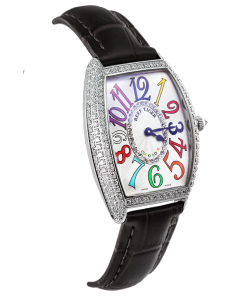 白色扭索紋表盤(pán),彩色阿拉伯?dāng)?shù)字時(shí)標(biāo),搭配鉆石圓環(huán)指示,以一種方式展現(xiàn)女士最迷人的慷慨和甜美。