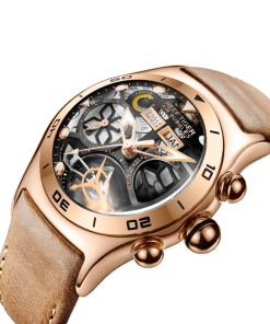 Aurora Ari Bubble 玫瑰金鏤空腕表。耐用的不銹鋼鍍玫瑰金,固定表圈也配有打造專業(yè)外觀的提案和演示。耐用的聚酯前后蓋,協(xié)調(diào)一致。