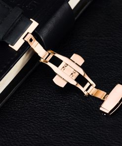 柔軟舒適的小牛皮表帶,搭配 表扣。