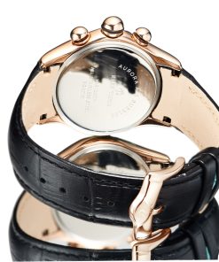 黑色鏤空表盤。 日期位于 4 點(diǎn)鐘位置,秒針位于 12 點(diǎn)鐘位置,分鐘位于 2 點(diǎn)鐘位置。