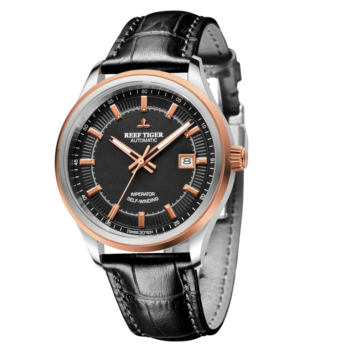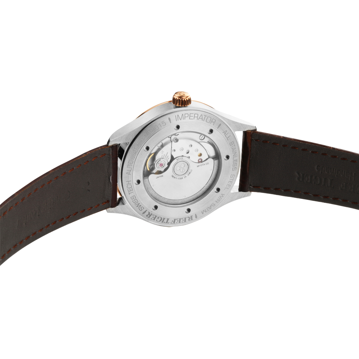 經(jīng)典 Imperator 男士腕表。耐用的不銹鋼玫瑰金表圈也適合打造專(zhuān)業(yè)的提案和演示。耐用的聚酯前后蓋與協(xié)調(diào)一致。