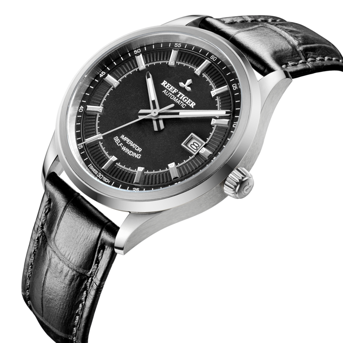 經(jīng)典 Imperator 男士腕表。耐用的不銹鋼固定表圈還配有可打造專(zhuān)業(yè)外觀的提案和演示。耐用的聚酯前后蓋,協(xié)調(diào)一致。