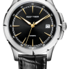 黑色表盤,帶銀色棒狀標記。時、分、秒和日期顯示。這款奢華腕表的表盤 12 點鐘位置印有其標志。