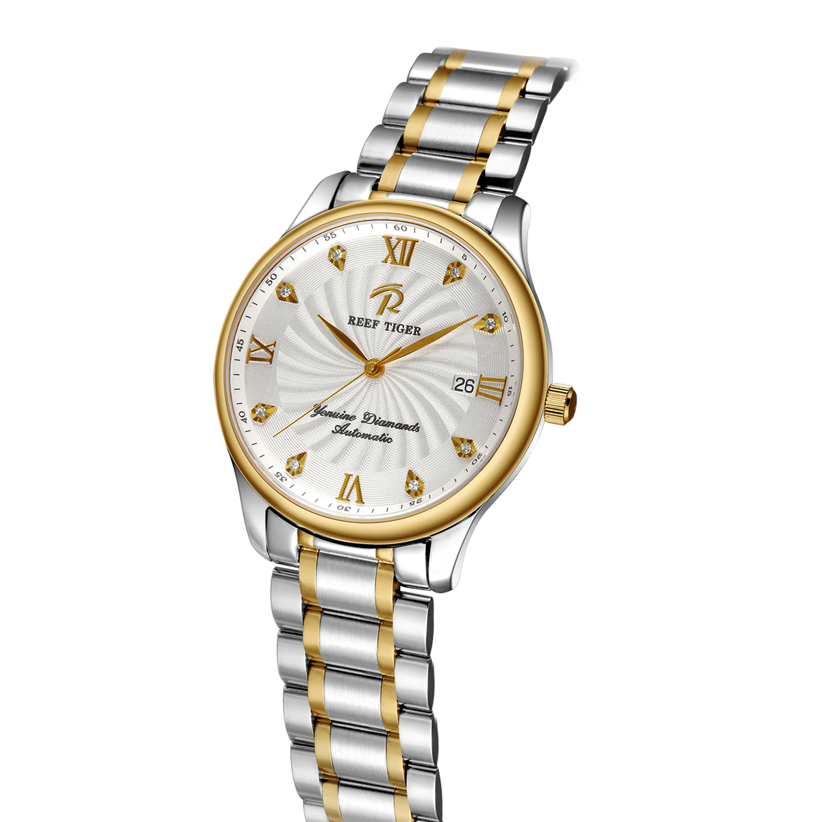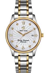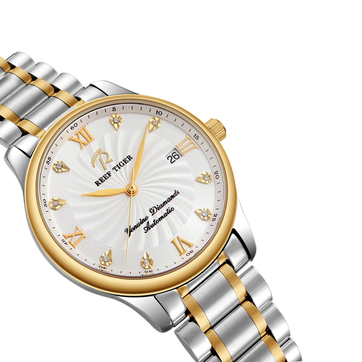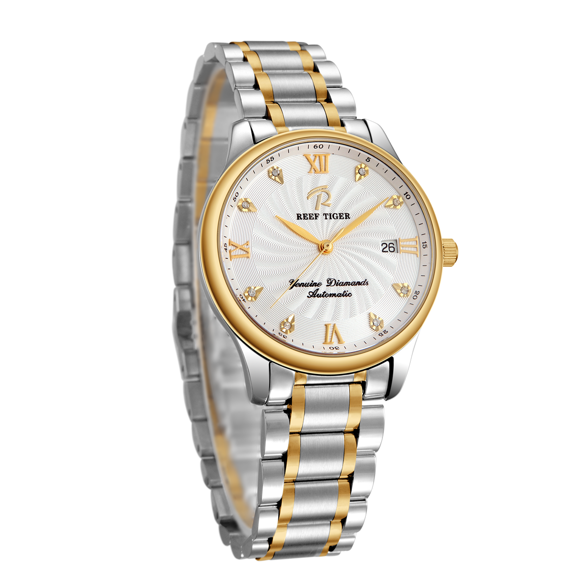 瑞士 Reef Tiger RT7101 自動(dòng)機(jī)芯,可靠性高,精準(zhǔn)度高,寶石數(shù)高,28,800vph,26 顆寶石,可提供 42 小時(shí)動(dòng)力儲(chǔ)存