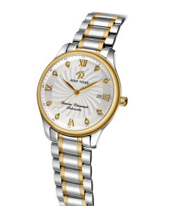 白色風(fēng)車(chē)表盤(pán)。這款雙色手表采用經(jīng)典的圓形表殼,搭配白色風(fēng)車(chē)表盤(pán)(鉆石刻度)和日期功能,非常適合男士佩戴。