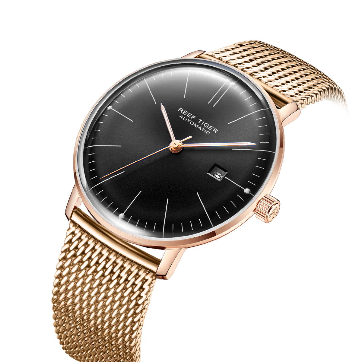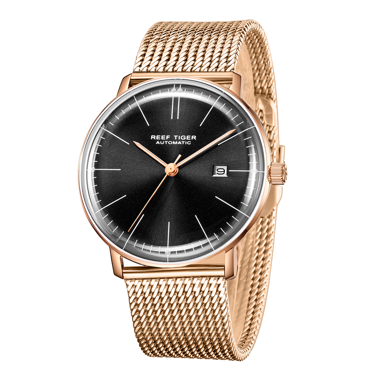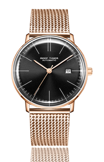 Reef Tiger 經典傳奇腕表。耐用的玫瑰金表圈,打造專業(yè)的提案和演示。耐用的聚酯前后蓋,協(xié)調一致。