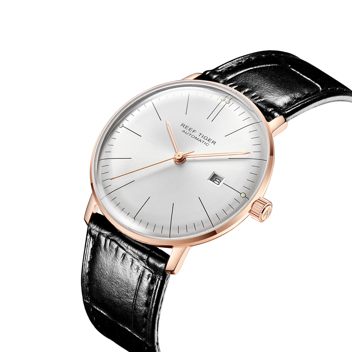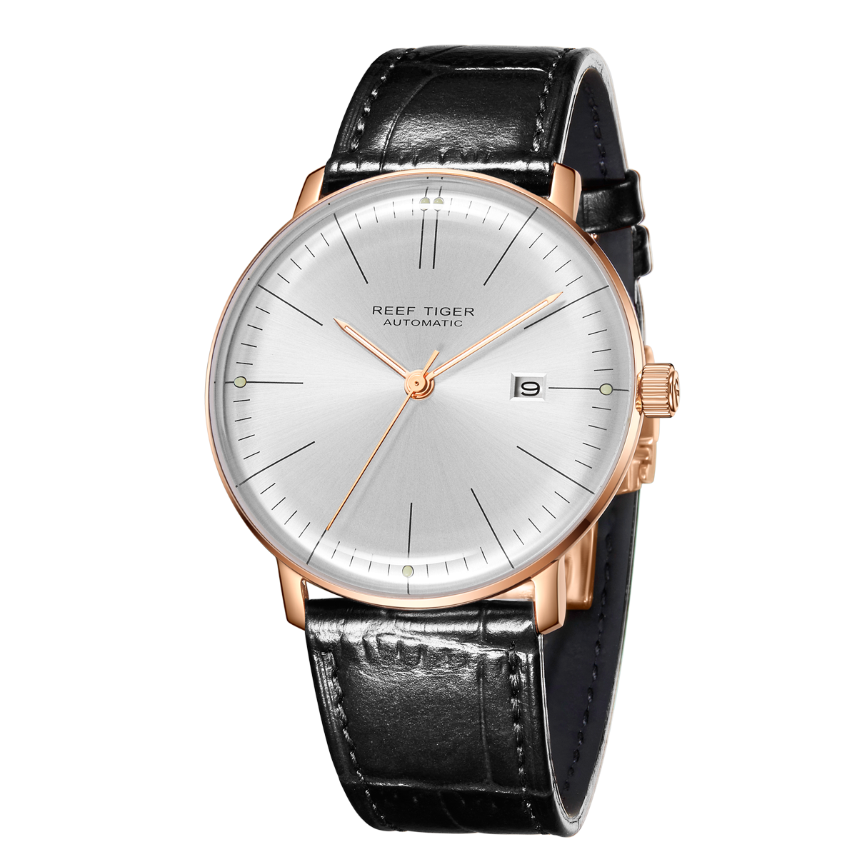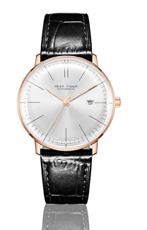 Reef Tiger 經(jīng)典傳奇腕表。耐用的玫瑰金表圈,還配有玫瑰金表圈,打造專業(yè)的提案和演示。耐用的聚酯前后蓋,協(xié)調(diào)一致。