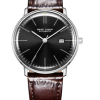 黑色表盤,帶棒狀標(biāo)記。時(shí)、分、秒和日期顯示。這款奢華腕表的表盤 12 點(diǎn)鐘位置印有品牌標(biāo)識(shí)。