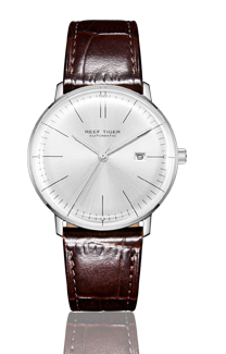 Reef Tiger 經(jīng)典傳奇腕表。耐用的鋼質(zhì)表圈,還配有打造專業(yè)外觀的提案和演示。耐用的聚酯前后蓋,協(xié)調(diào)一致。