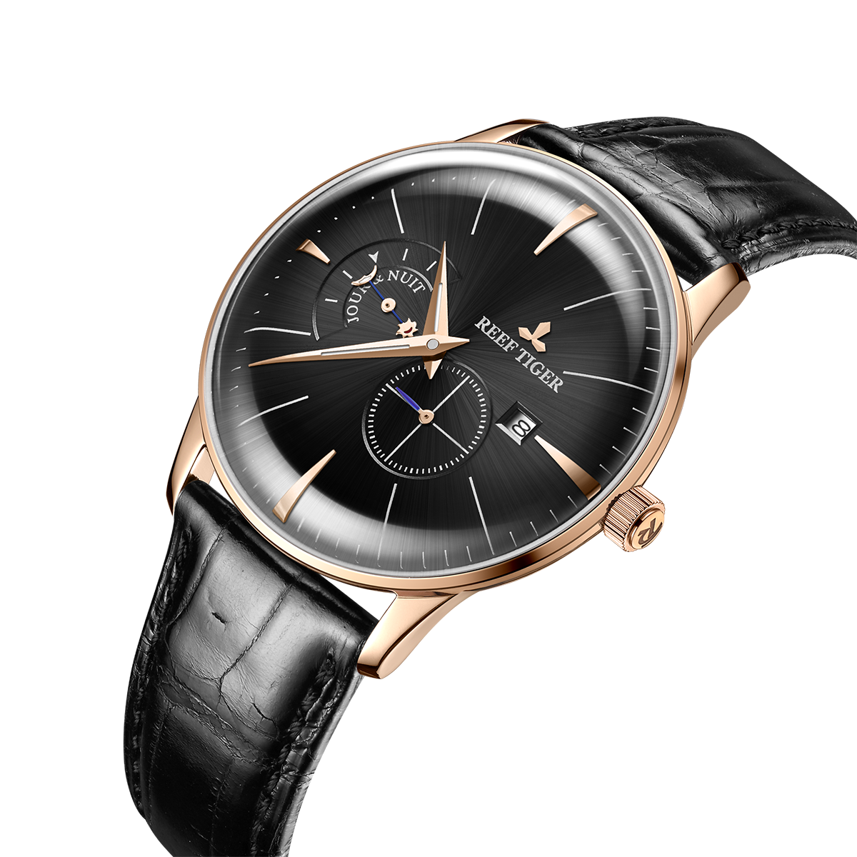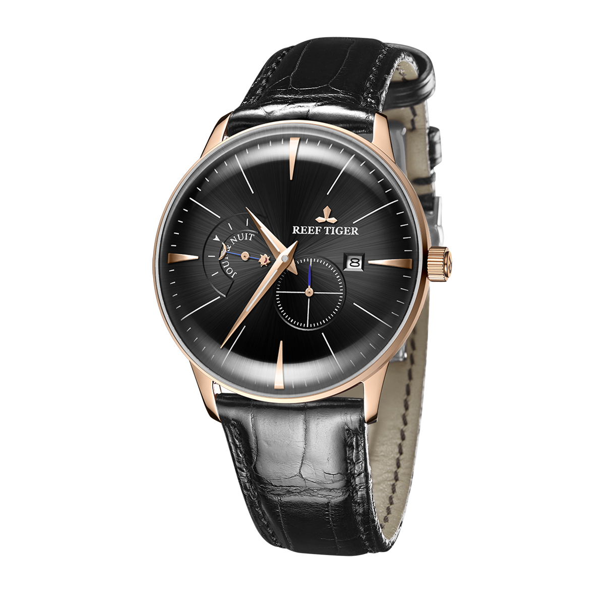 Reef Tiger 經(jīng)典工匠腕表。耐用的玫瑰金表圈,還配有玫瑰金表圈,打造專業(yè)的提案和演示。耐用的聚酯前后蓋,協(xié)調(diào)一致。
