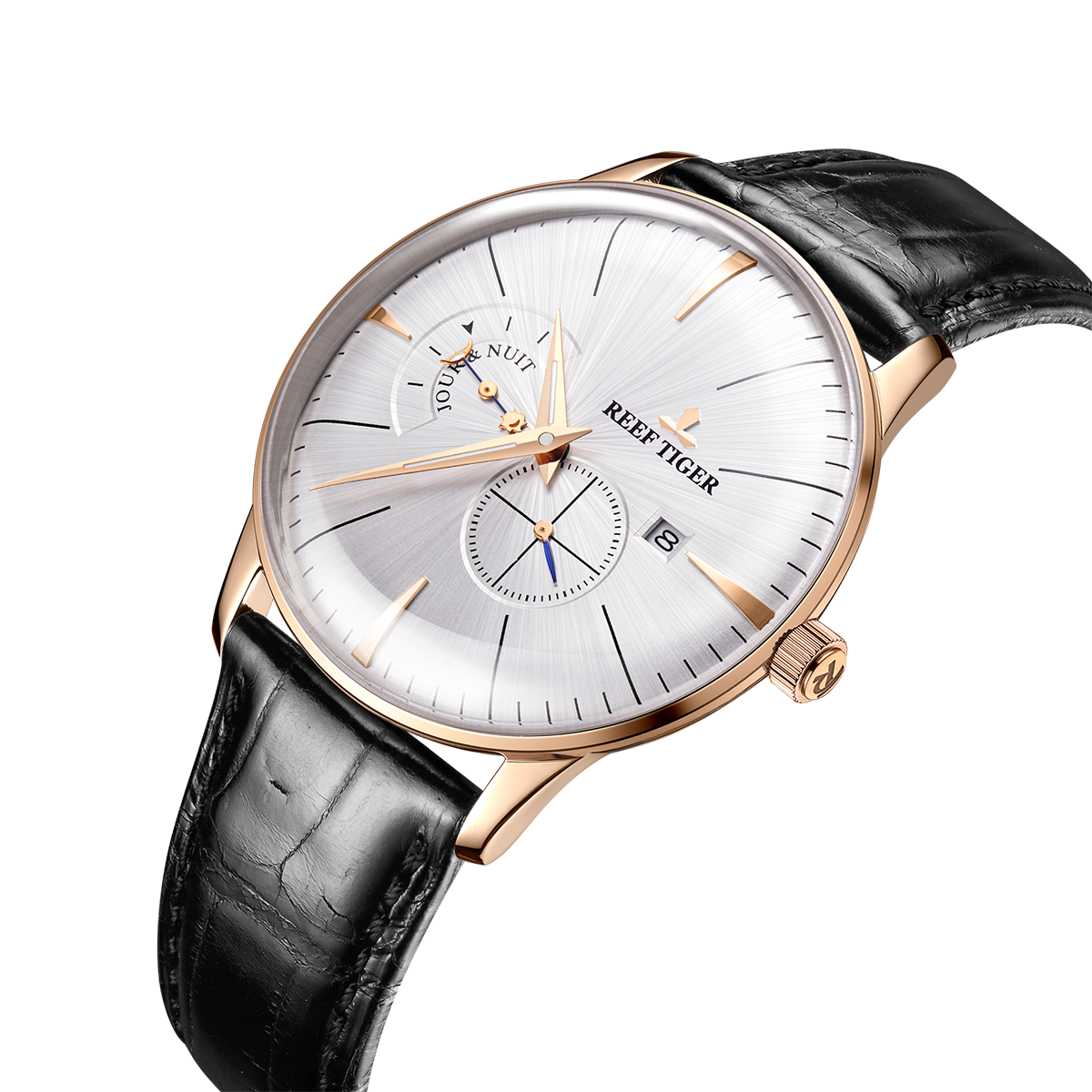 Reef Tiger 經(jīng)典工匠腕表。耐用的玫瑰金表圈,還配有玫瑰金表圈,打造專業(yè)的提案和演示。耐用的聚酯前后蓋,協(xié)調(diào)一致。