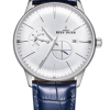 白色表盤,帶棒狀標(biāo)記。時(shí)、分、秒和日期顯示。這款奢華腕表的表盤 1 點(diǎn)鐘位置印有品牌標(biāo)識(shí)。