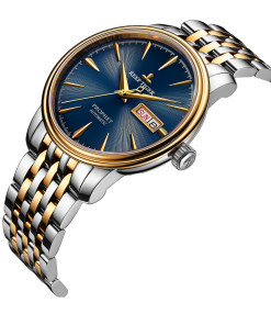 藍色表盤配羅馬刻度。時、分、秒和日期顯示。這款奢華腕表的表盤 6 點鐘位置印有品牌標(biāo)識。
