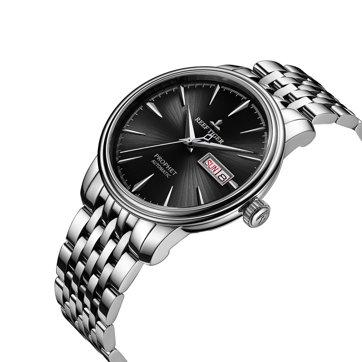 Reef Tiger 經(jīng)典 Prophet 腕表。耐用的不銹鋼雙拱形表圈還配有可打造專(zhuān)業(yè)外觀的提案和演示。耐用的聚酯前后蓋與表盤(pán)相得益彰。