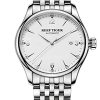 藍(lán)色表盤(pán),配銀色棒狀和羅馬數(shù)字標(biāo)記。小時(shí)、分鐘、秒和日期顯示。