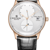 白色表盤,帶棒狀/阿拉伯?dāng)?shù)字標(biāo)記。時(shí)、分、秒和日期顯示。這款奢華腕表的表盤 3 點(diǎn)鐘位置印有品牌標(biāo)識(shí)。