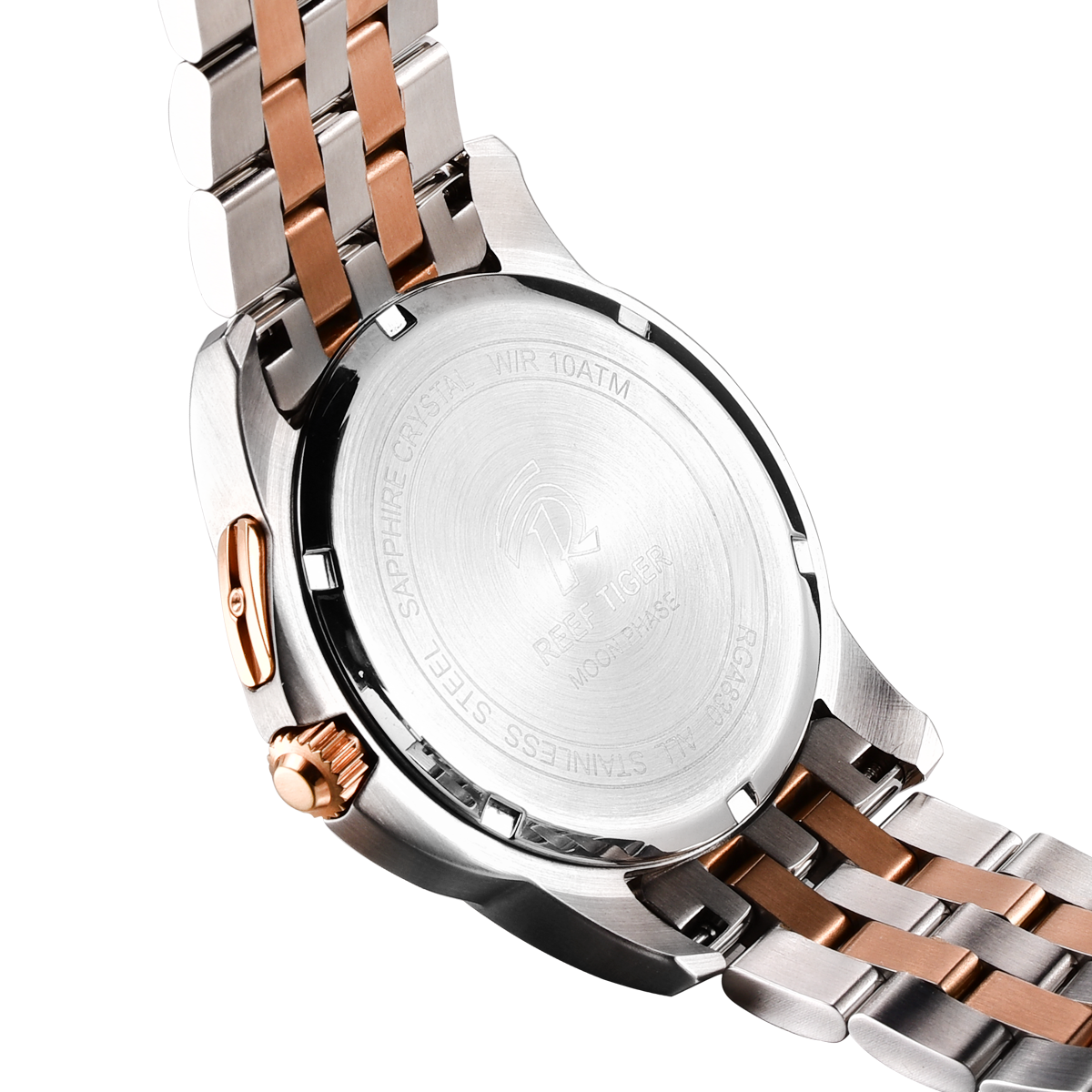 經(jīng)典 Time-Matic 男士腕表。耐用的不銹鋼玫瑰金表圈也適合打造專業(yè)的提案和演示。耐用的聚酯前后蓋與協(xié)調(diào)一致。