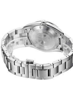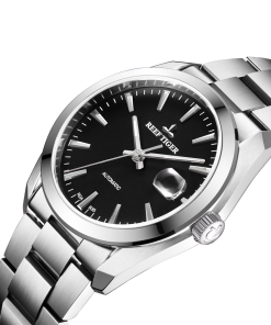 黑色表盤帶棒狀標記。這款萬年歷 II 日期腕表采用拉絲飾面不銹鋼表殼和鉆石切割組合外圈,直徑 40 毫米。它非常優(yōu)雅和經(jīng)典。作為一款商務(wù)腕表,簡單易讀是瑞夫泰格一直追求的目標。 3點鐘位置的日期顯示窗口帶來更好的佩戴感。