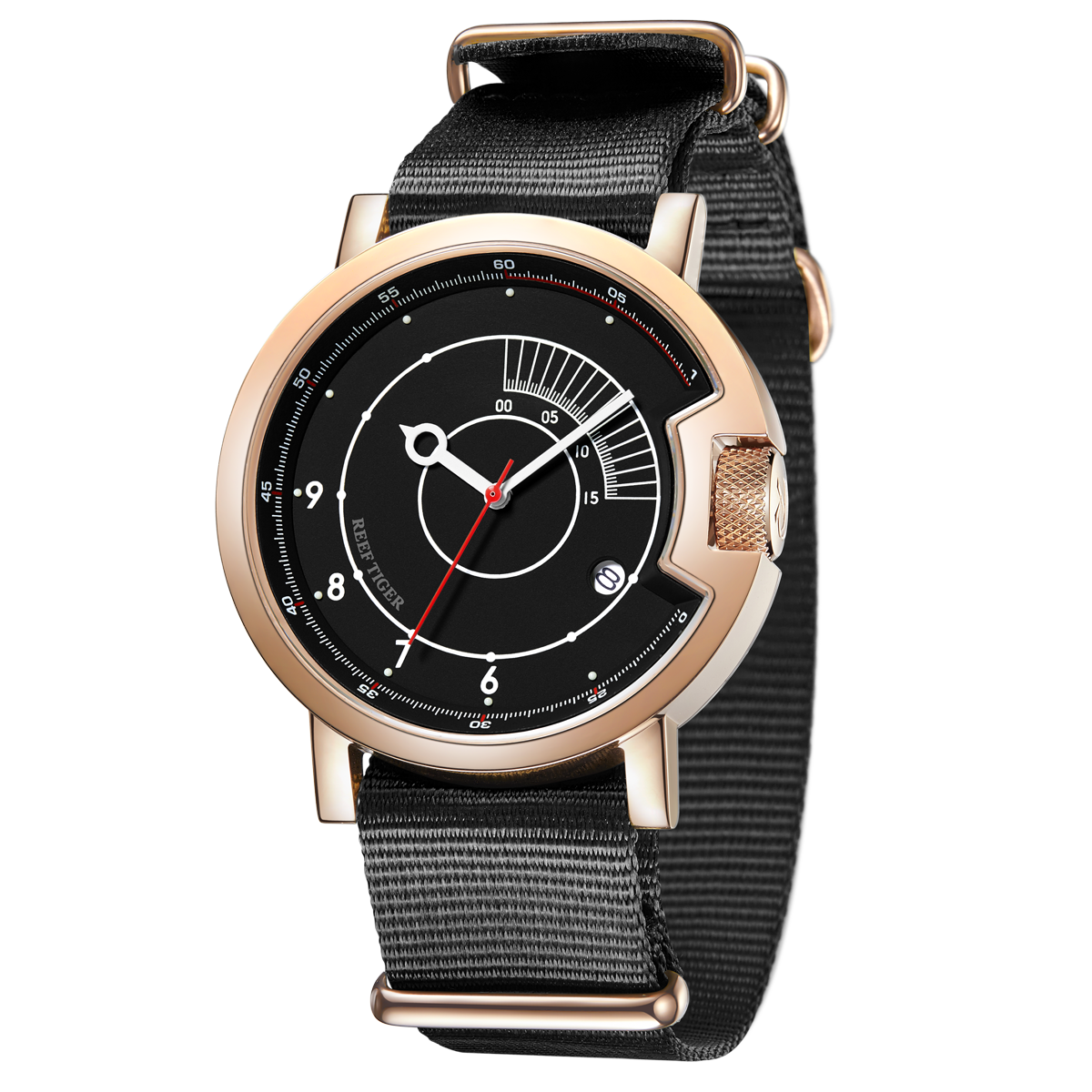 Reef Tiger 1980S 限量版腕表。耐用的玫瑰金表圈,還配有玫瑰金表圈,打造專業(yè)的提案和演示。耐用的聚酯前后蓋,協(xié)調(diào)一致。