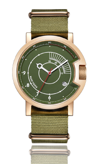 綠色表盤,帶阿拉伯數(shù)字標記。時、分、秒和日期顯示。這款奢華腕表的表盤 8 點鐘位置印有品牌標識。