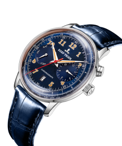 白色表盤,帶阿拉伯?dāng)?shù)字標(biāo)記。時(shí)、分、秒、星期、日期顯示。這款奢華腕表的表盤 12 點(diǎn)鐘位置印有品牌標(biāo)識(shí)。